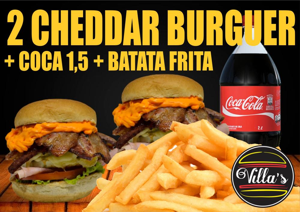 2x Cheddar Burguer+ Coca 1.5lt ou Sukita 2lt+ batata frita+ 10 bolinhas de queijo