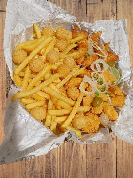 COMBO PEIXE +FRANGO +FRITAS +BOLINHAS DE QUEIJO+REFRI 2LT